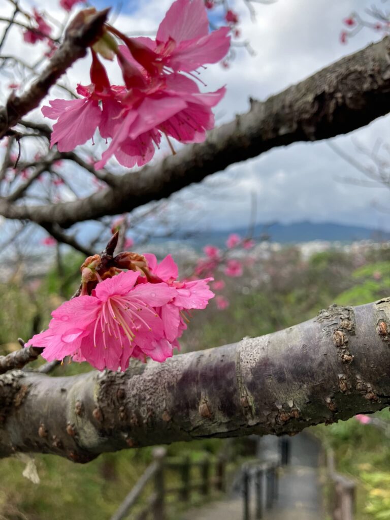 開花を迎えた名護城跡公園では、遊歩道沿いに桜のアーチが続き、地元の方や、世界中から訪れた観光客がゆっくりと散策しながら写真を撮る姿が多く見られました。