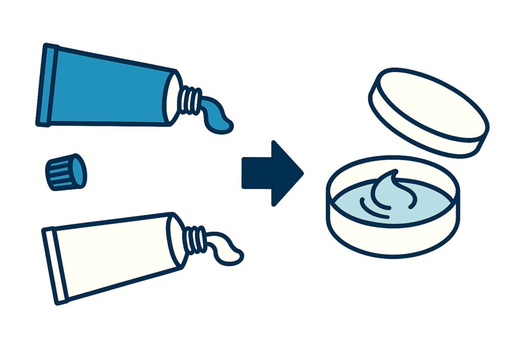 軟膏ヘラ・軟膏板を使用して手作業で混合する手順をお見せします。